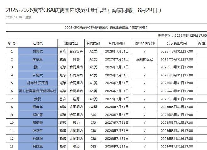 雷速體育8月29日訊 根據CBA官方的公示,南京同曦完成13主場,其中,外界關注的林葳,郭昊文均缺席,祝銘震成為隊內唯一的頂薪球員。